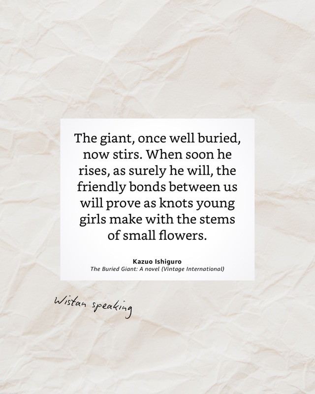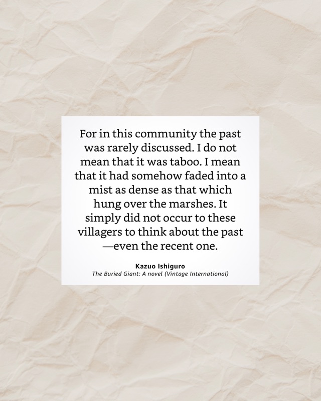 What’s the message? Forgetting can preserve love and peace, but at the cost of truth. Ishiguro asks whether a society (or a marriage) built on partial memory can ever truly be just or secure.