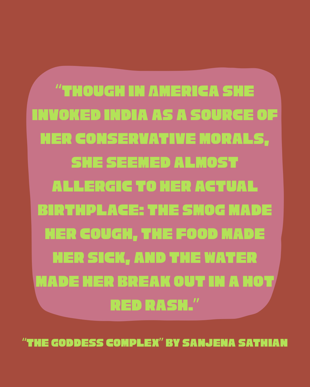 🚼 TGC has 2 distinct halves; I’m not sure if this tonal “break” is intentional or not. The first consists of struggling PhD candidate Sanjana, reaching a turning point in which she makes several bold decisions and takes control of her destiny only to be met by shocked family that can’t make sense of her choices. Mainly, they don’t understand how she can’t want a child. Sathian draws a distinction in her commentary about how society tends to treat women who choose not to have children versus women who are unable to have children. I enjoyed the first half of TGC quite a bit.